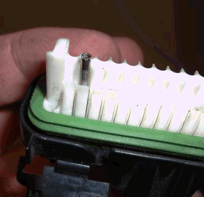 Now that you have it removed, you are ready to insert it into the PCM connectors. So, locate the proper PCM 80 pin connector, and locate the correct pin # on that connector. Take the PCM pin you just removed and insert it into the proper slot on the PCM connector. Go ahead and push it in all the way until the pin clicks into place.